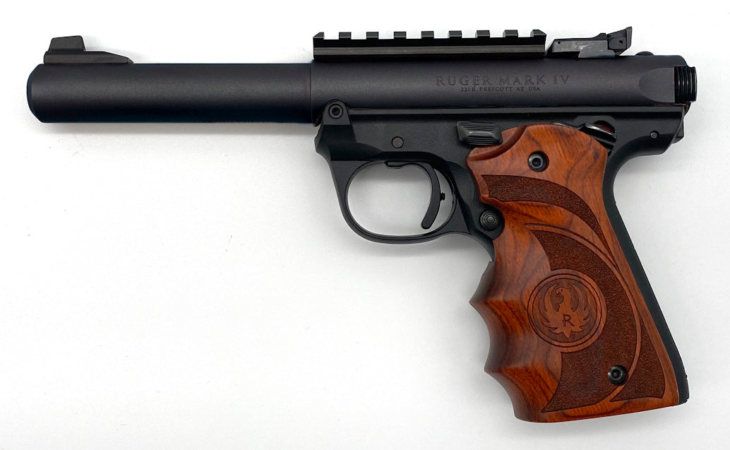 Smoothly contoured, comfortable laminate grip features natural 1911-style grip angle with checkered grip panels for a non-slip hold. Finger groove grips provide a solid hold, even with sweaty hands. Grip includes embossed Ruger eagle. Made in the USA by Altamont. This is a natural wood product - color of wood grain varies. Fits Ruger Mark IV 22/45™ models only.
