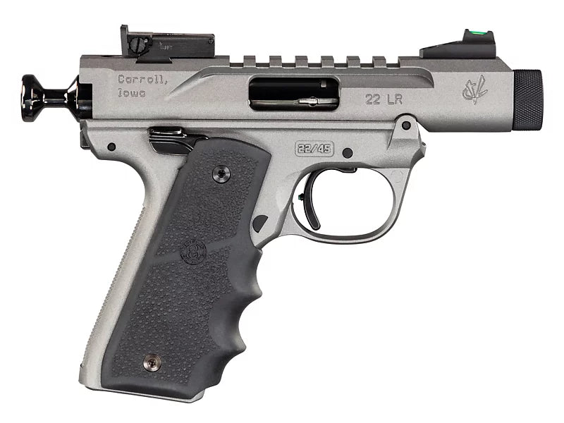 Die Black Mamba verwendet einen Ruger MK IV 22/45 Polymerrahmen, der mit Volquartsens Accurizing Kit nachgerüstet wurde und einen knackigen, sauberen Abzug von 2,25 lb bietet. Der Rahmen wurde auch mit unserem Magazinauslöser ausgestattet, der in Verbindung mit unseren Magazinbodenpads (standardmäßig enthalten) Zuführungsprobleme beseitigt. Dies wird dadurch erreicht, dass die Position des Magazins im Rahmen angehoben wird, so dass der Bolzen beim Einschieben der Patrone besser einrastet.