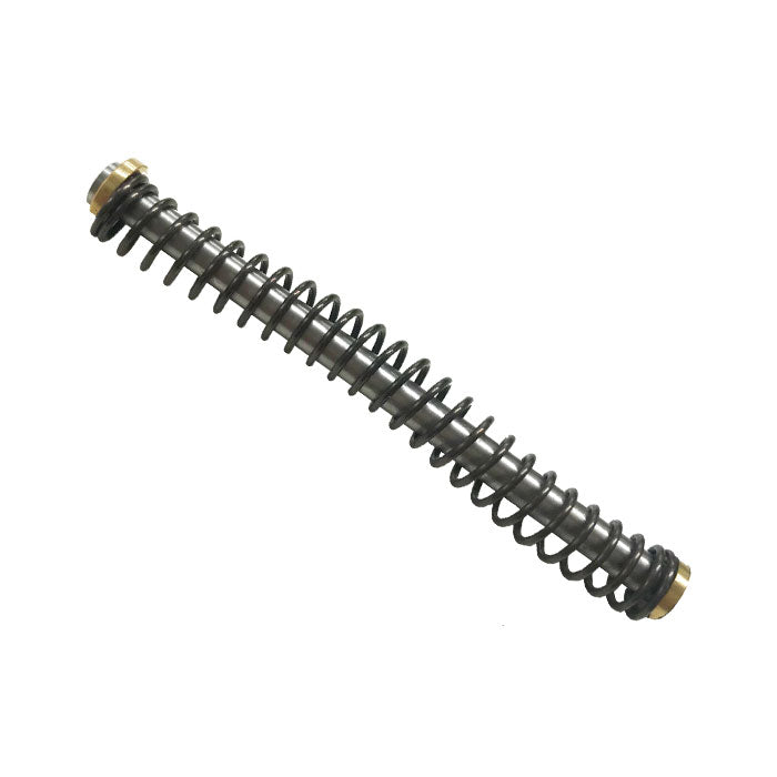 Die TANDEMKROSS Edelstahl-Führungsstange verfügt über eine gefangene Feder. Dadurch wird kein Spezialwerkzeug benötigt und die Wartung der Pistole vereinfacht.