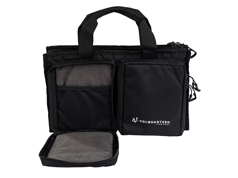 Pistol Range Bag im Soft-Competition-Style mit Volquartsen-Branding, entworfen und gefertigt in Zusammenarbeit mit 221B Tactical. Diese Tasche eignet sich für Wettbewerbstage oder zwanglose Besuche auf der Schießbahn.