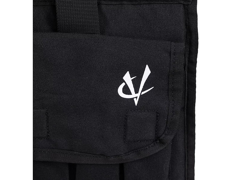 Die Tasche verfügt über zwei zusätzliche, vollständig zu öffnende Außenfächer sowie sieben Magazintaschen mit magnetischer Verschlussklappe. Das "V"-Logo an der Magazintaschenseite kann zur Anzeige der Mündungsausrichtung verwendet werden.